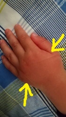 壱姫、4歳11ヶ月弐太郎、2歳1ヶ月姫と幼稚園から歩いて帰る途中で弐太郎は前のシートに乗せたまま自転車ごと転倒して弐太郎は頭をケガしましたそしてちょうど受付開始となった整形外科に駆け込んで診察となった話からです診察を受けてこうなりました 傷口を…