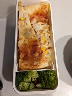 前日の残り(今回は宅配ピザ)のお弁当です